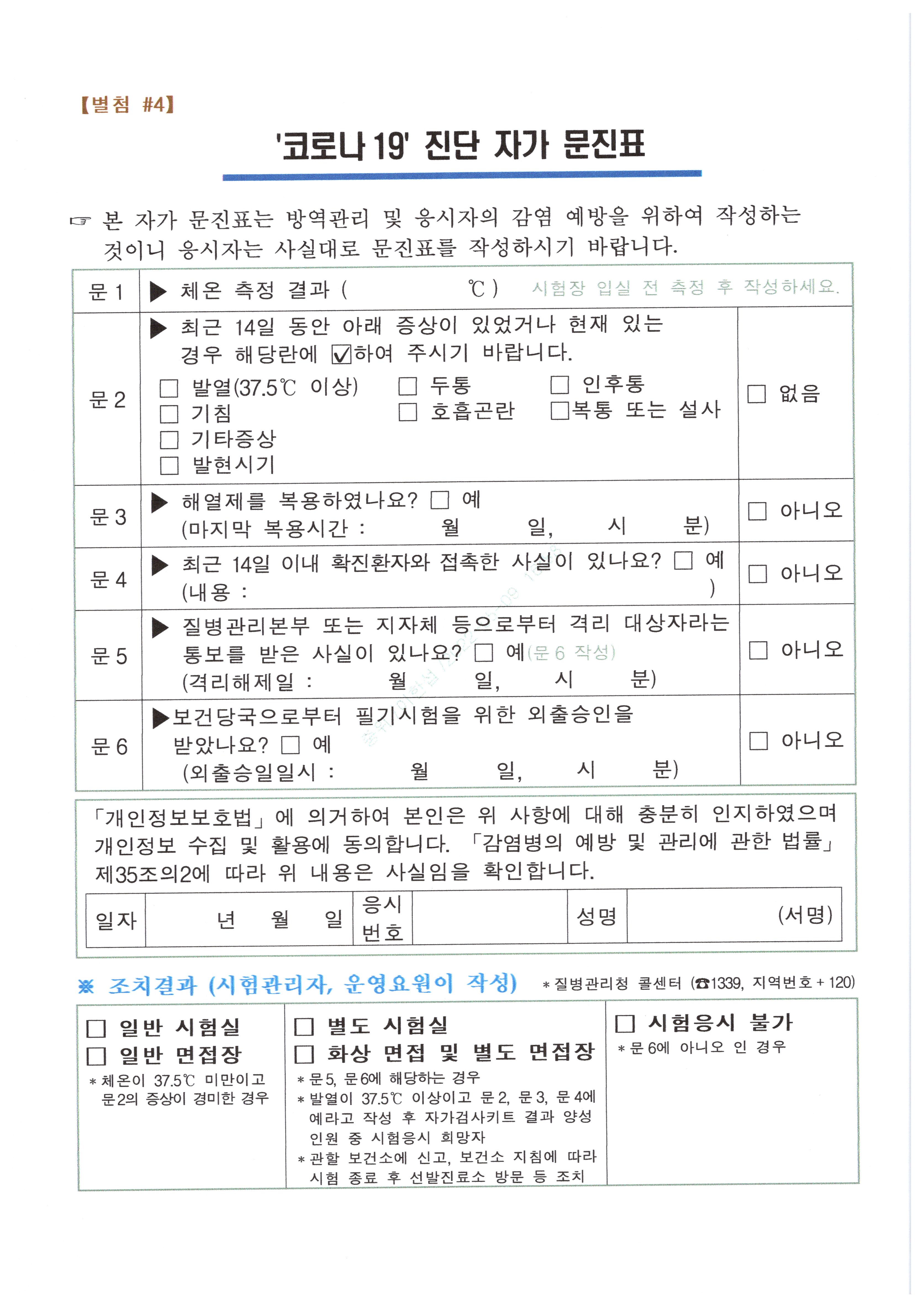 - 2022년도 학군사관 63기 및 64기 후보생 선발 문진표