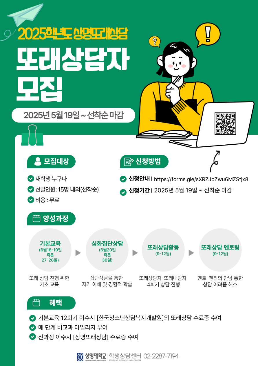 - [학생상담센터] 2025학년도 <상명또래상담> 또래 상담자 모집