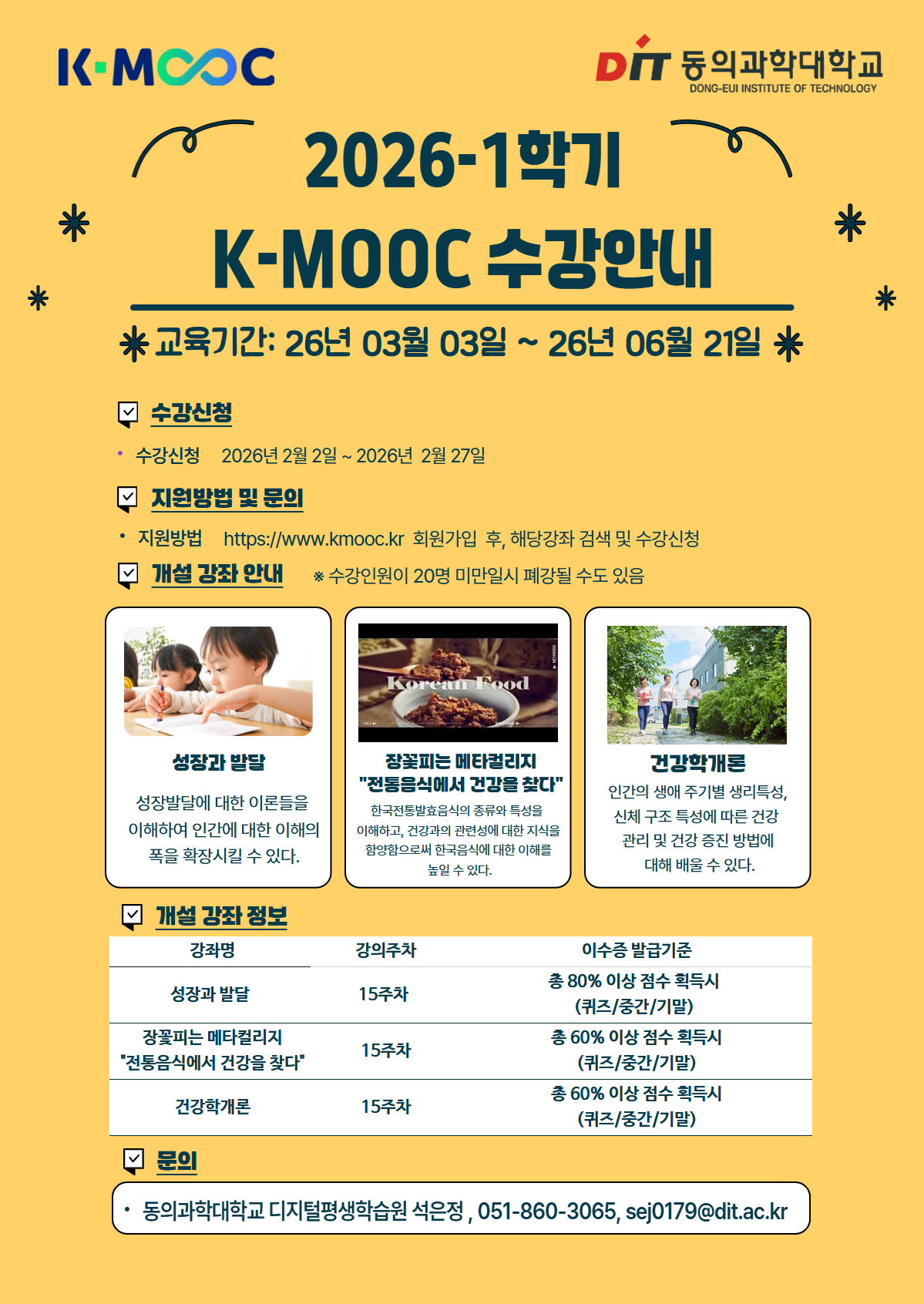 - 동의과학대학교 2026년 1학기 K-MOOC 강좌 수강 안내