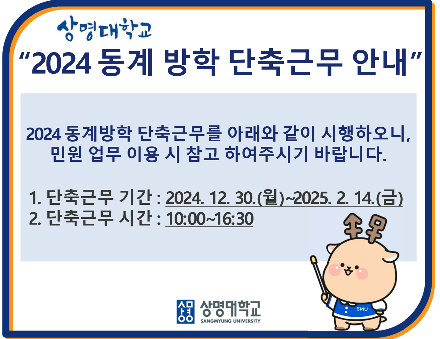 - 2024학년도 동계방학 단축근무 안내
