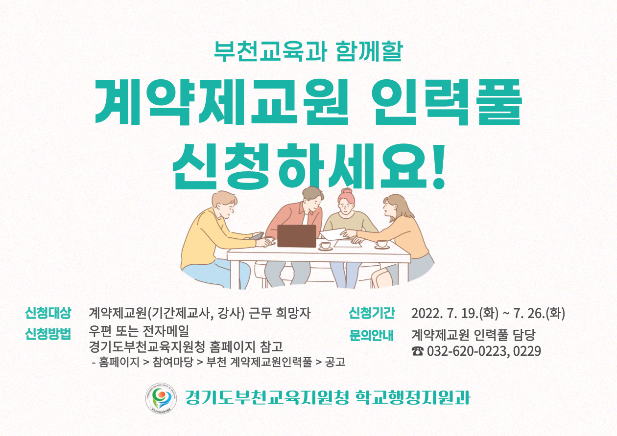 - [기타] 경기도부천교육지원청 계약제 교원 인력풀 등록 신청 안내