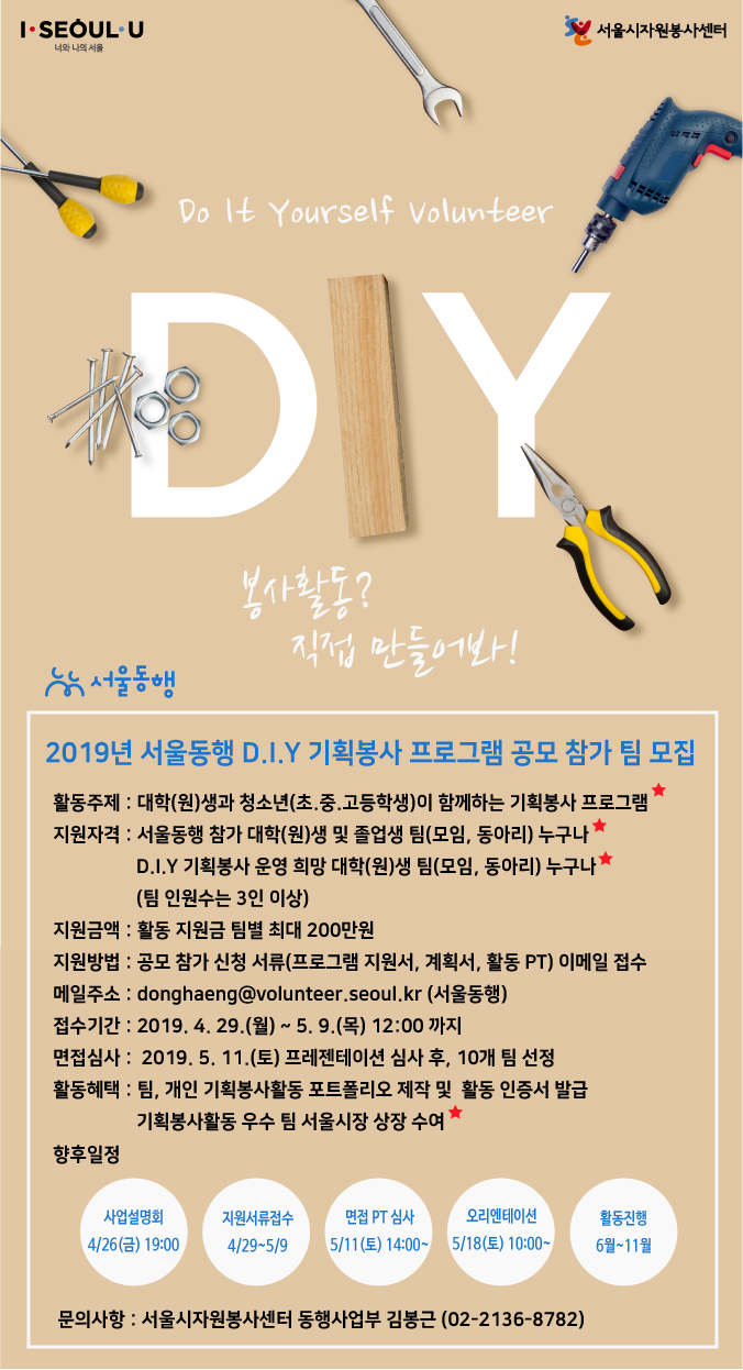 - 서울동행 D . I .Y (Do I t You r se l f ) 기획봉사 공모사업 안내