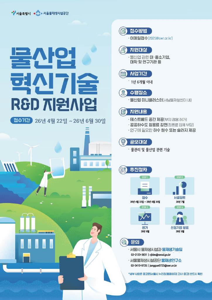 [서울특별시] 물산업 혁신기술 R&D 지원사업 수시공고 게시 및 홍보 협조요청