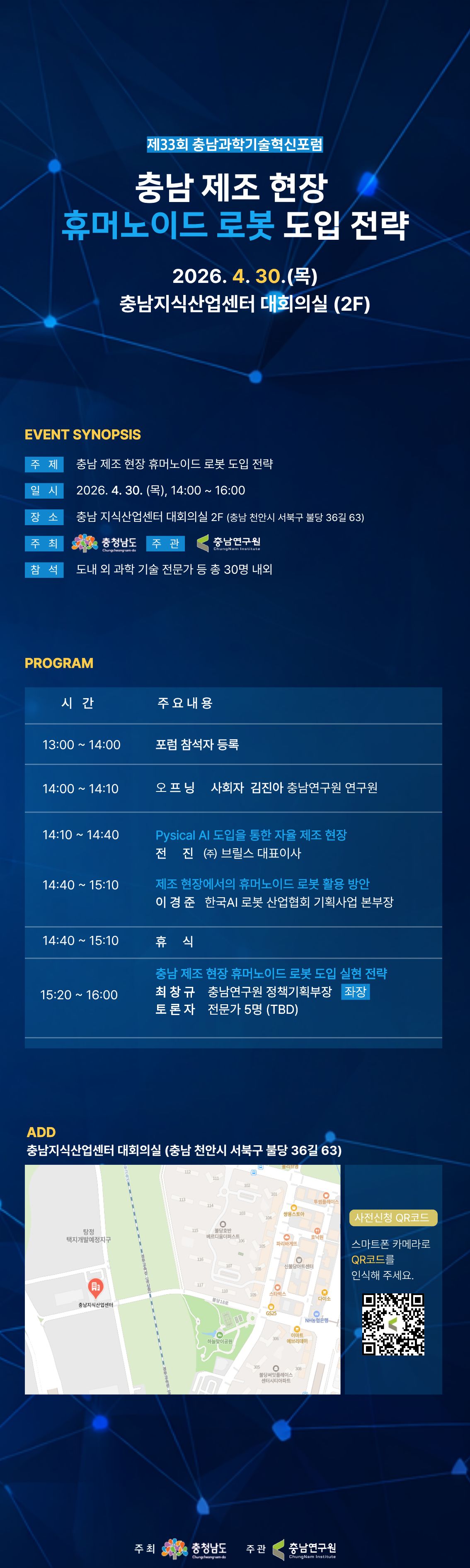 - [충남연구원]「제33회 충남과학기술혁신포럼」개최 안내