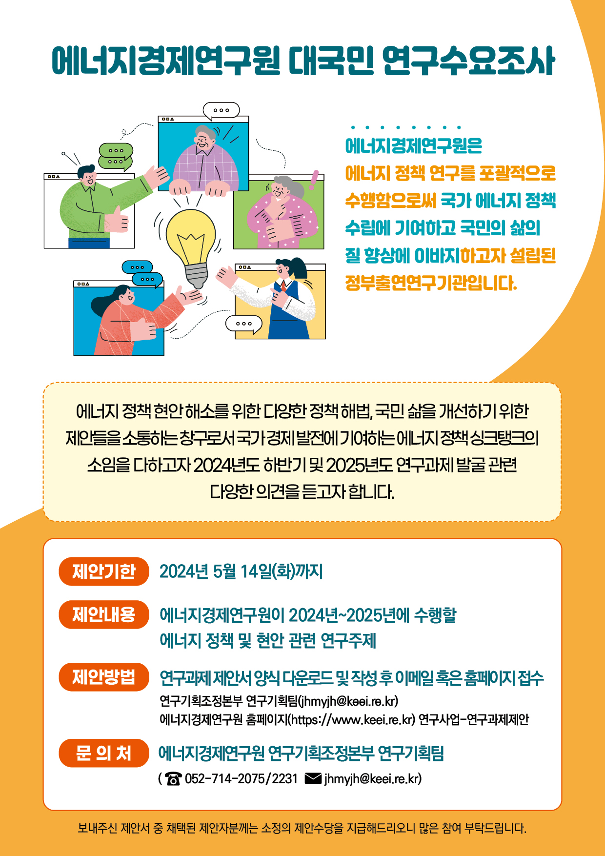 - [에너지경제연구원] 2024년도 하반기 및 2025년도 연구수요조사 시행