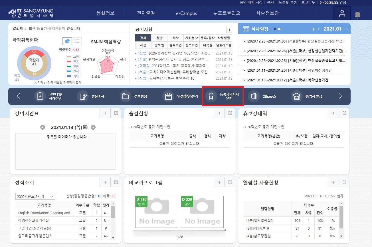샘물포털시스템으로 로그인하여 직접 출력 가능합니다. (출력방법 보기)