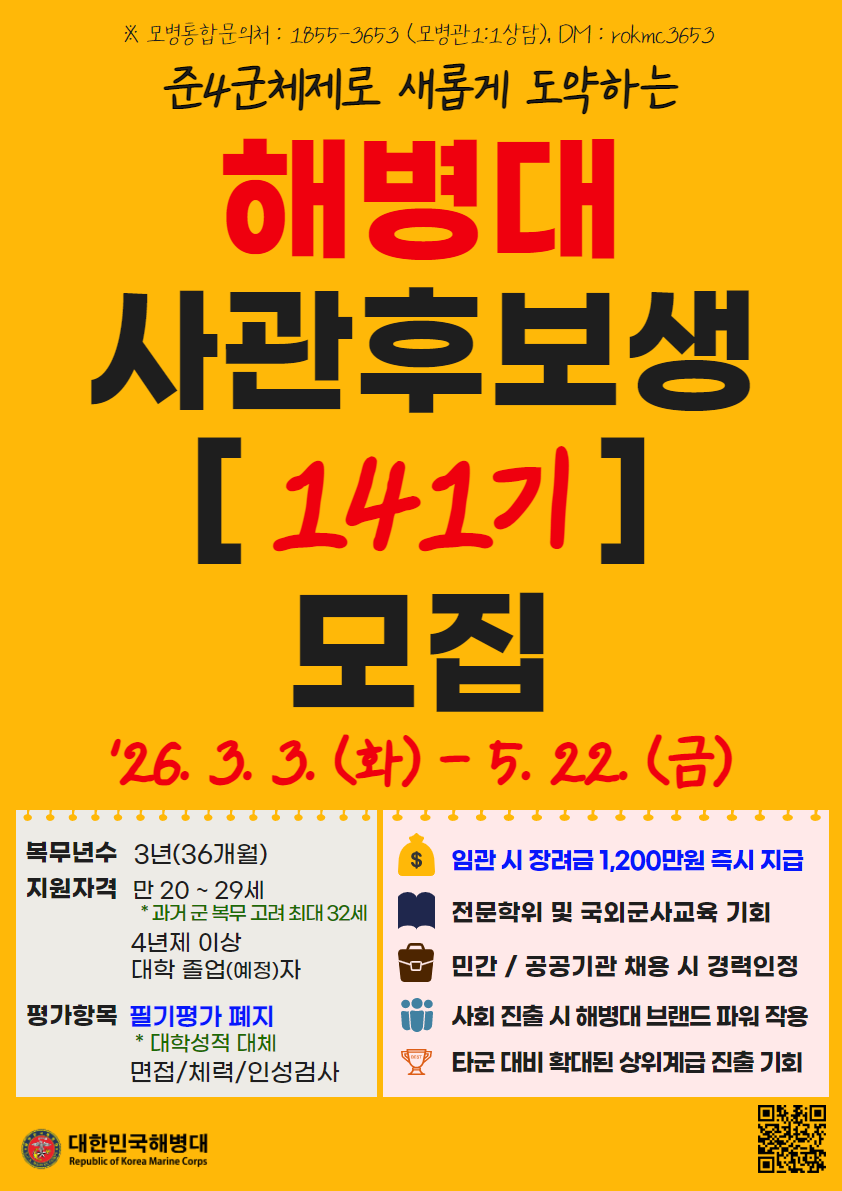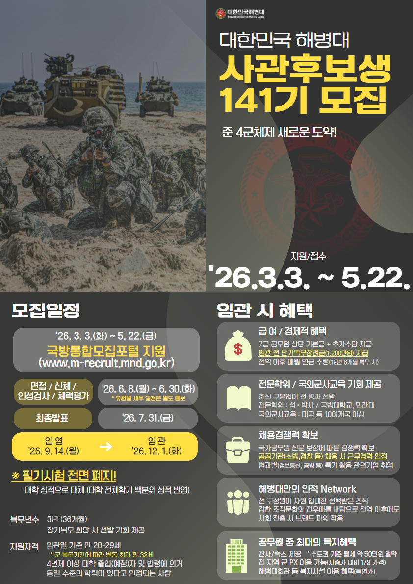 | 서울 [일반] | [예비군대대] 해병대 장교 사후 141기 모집 홍보 |