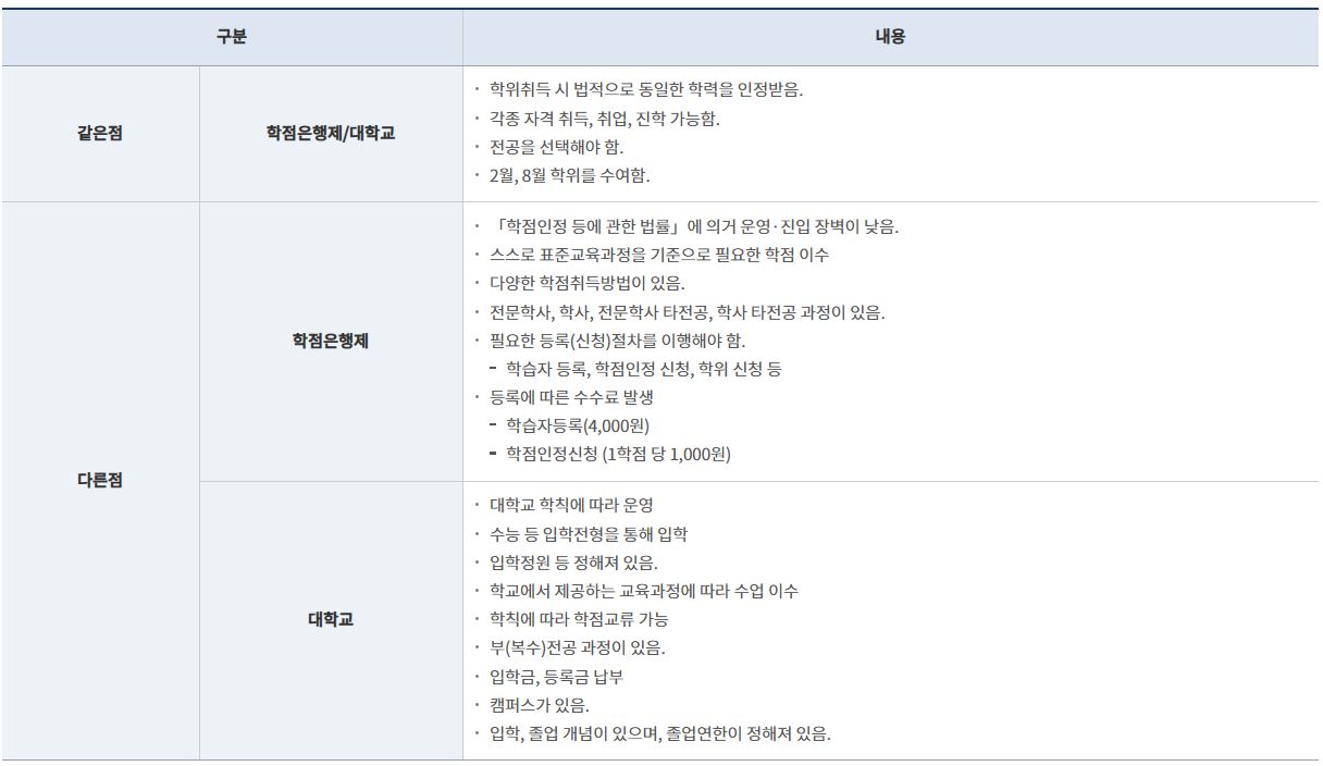 학점은행제와 대학교의 차이