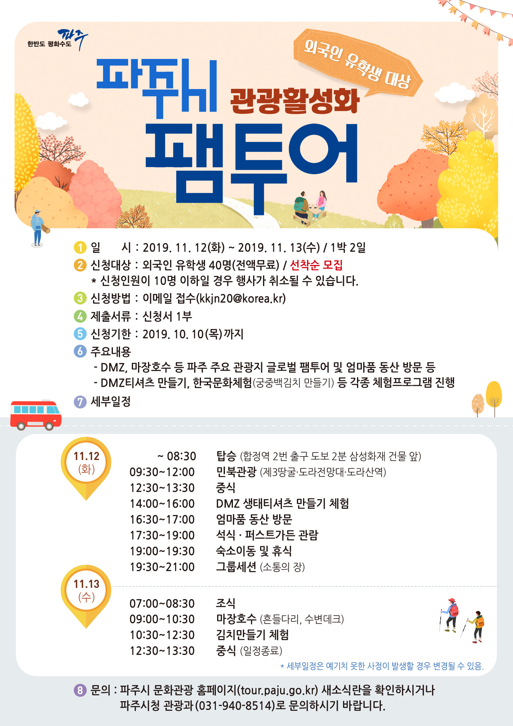 - [생활] 외국인유학생 대상 파주 관광활성화 팸투어 신청자 모집 안내