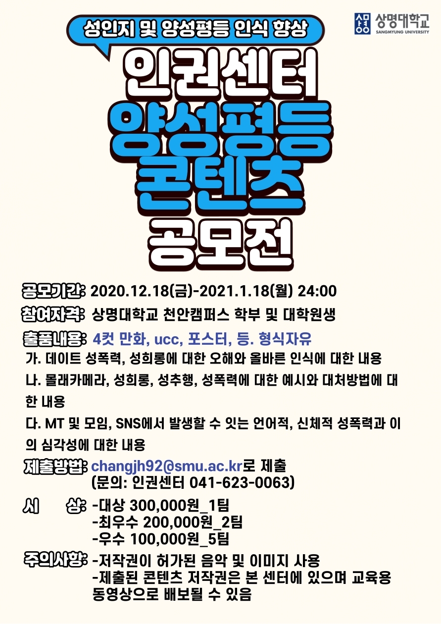 - [2020학년도] 양성평등 콘텐츠 공모전 안내