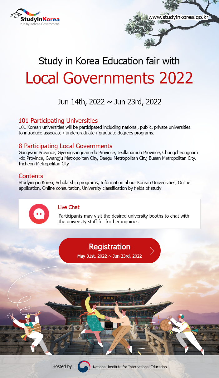 - [국립국제교육원] 2022 지자체와 함께하는 한국유학박람회 (www.studyinkorea.go.kr) 안내