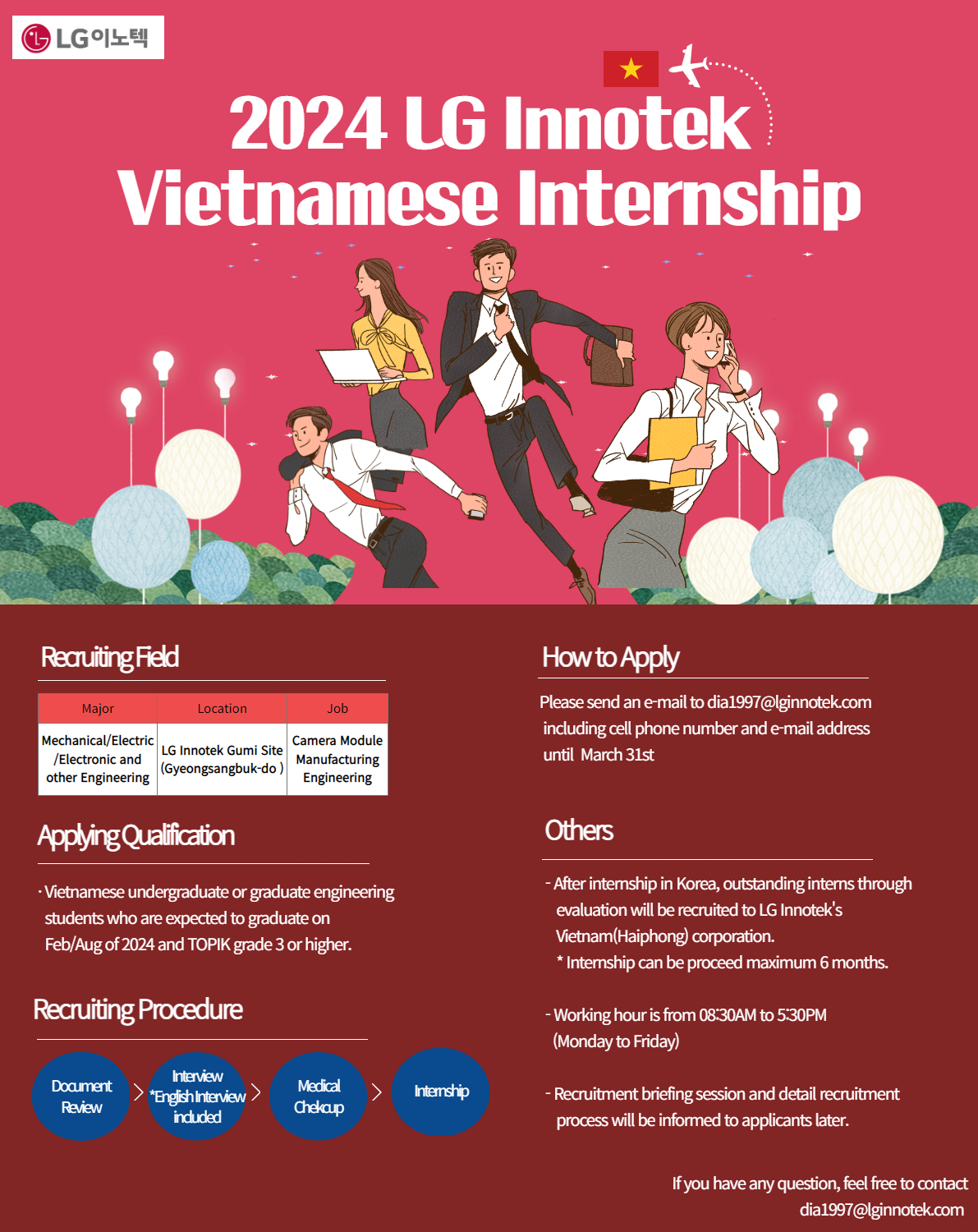 - [취업 및 진로] [LG이노텍] 베트남 유학생 인턴십 모집(~10/14)