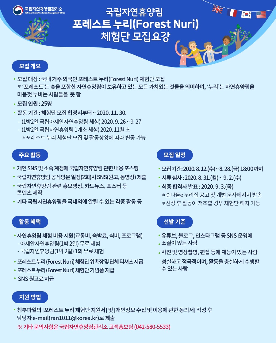 - 국립자연휴양림 포레스트 누리(Forest Nuri) 체험단 모집 안내
