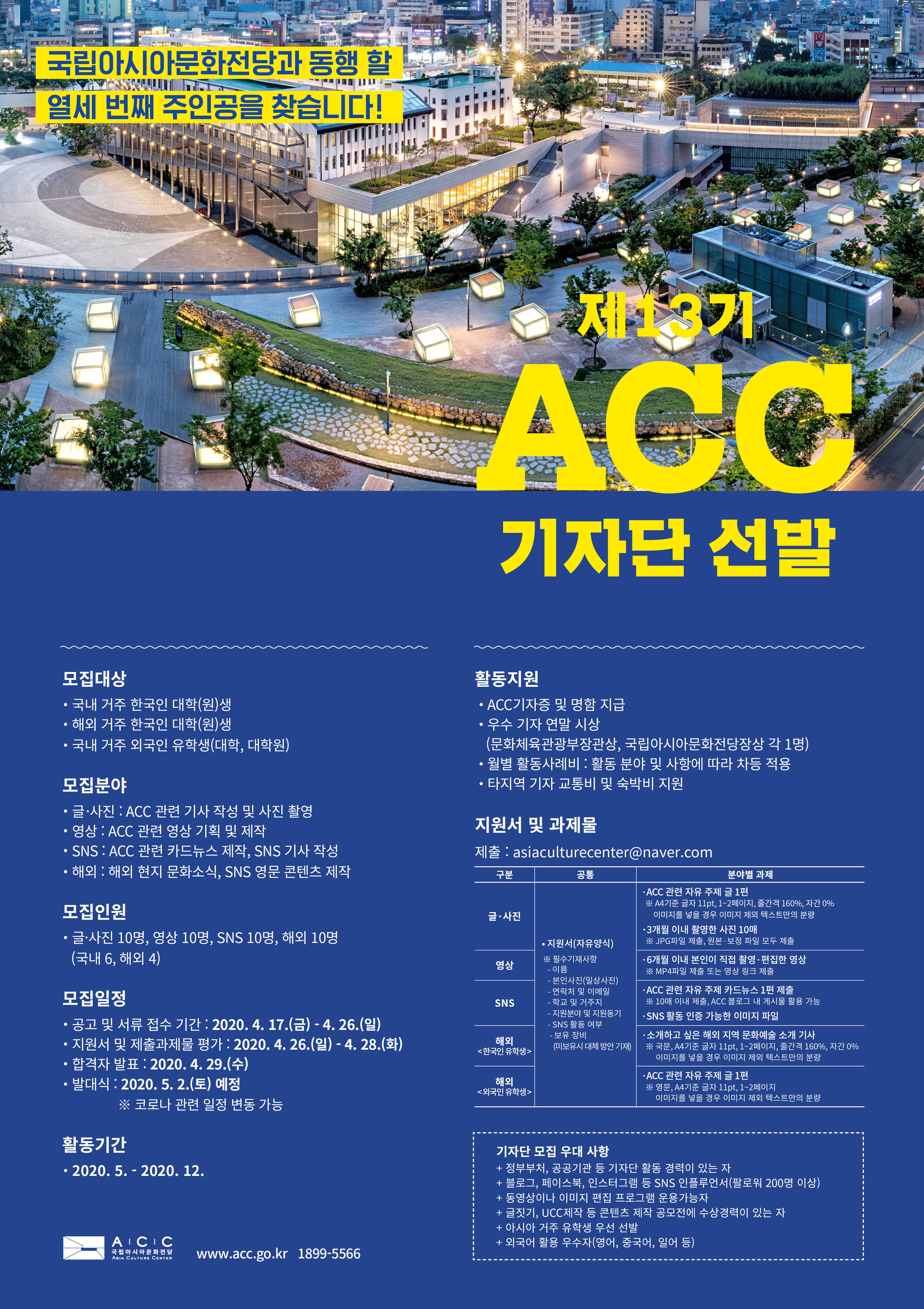 - 2020년 국립아시아문화전당 제13기 ACC 대학생 기자단 모집 안내