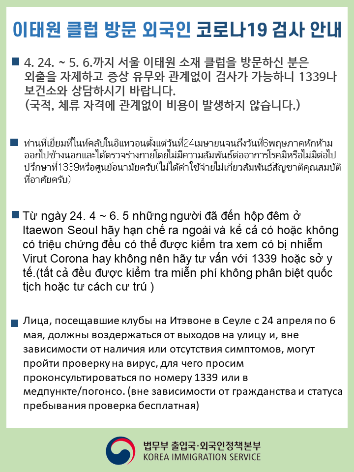 - [코로나19] 이태원 클럽 방문 외국인 코로나19 검사 안내