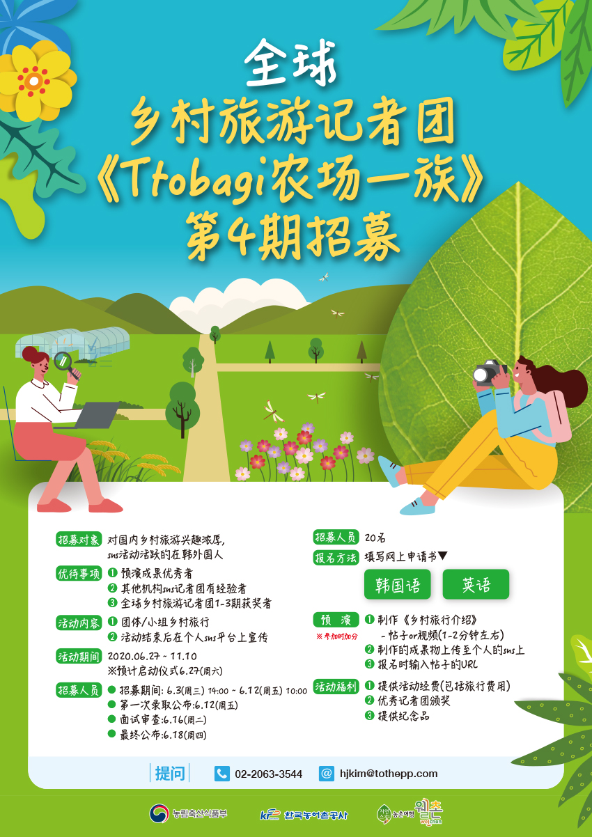 - 2020년 글로벌 농촌관광 서포터즈(또바기팜족 4기) 모집 안내