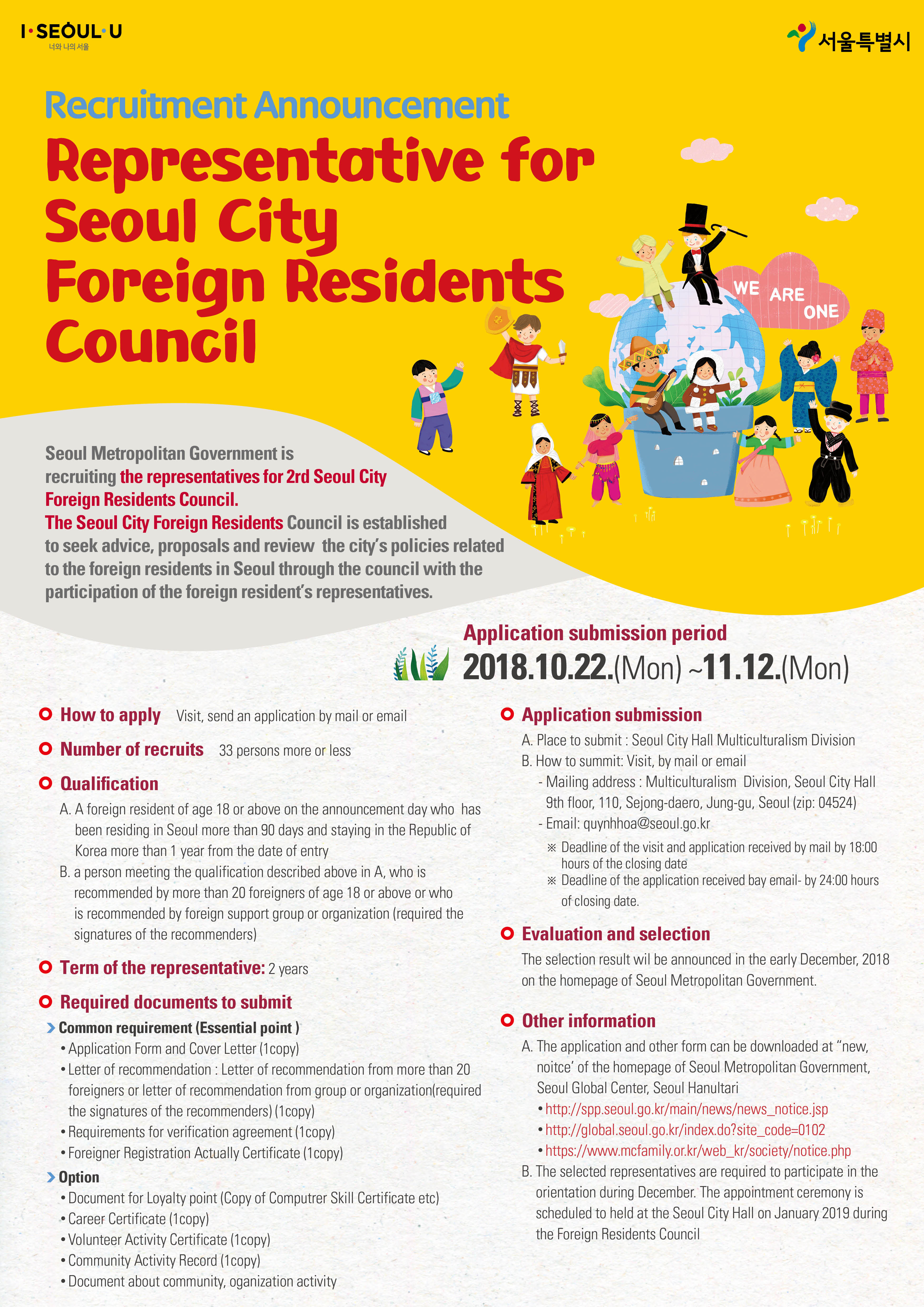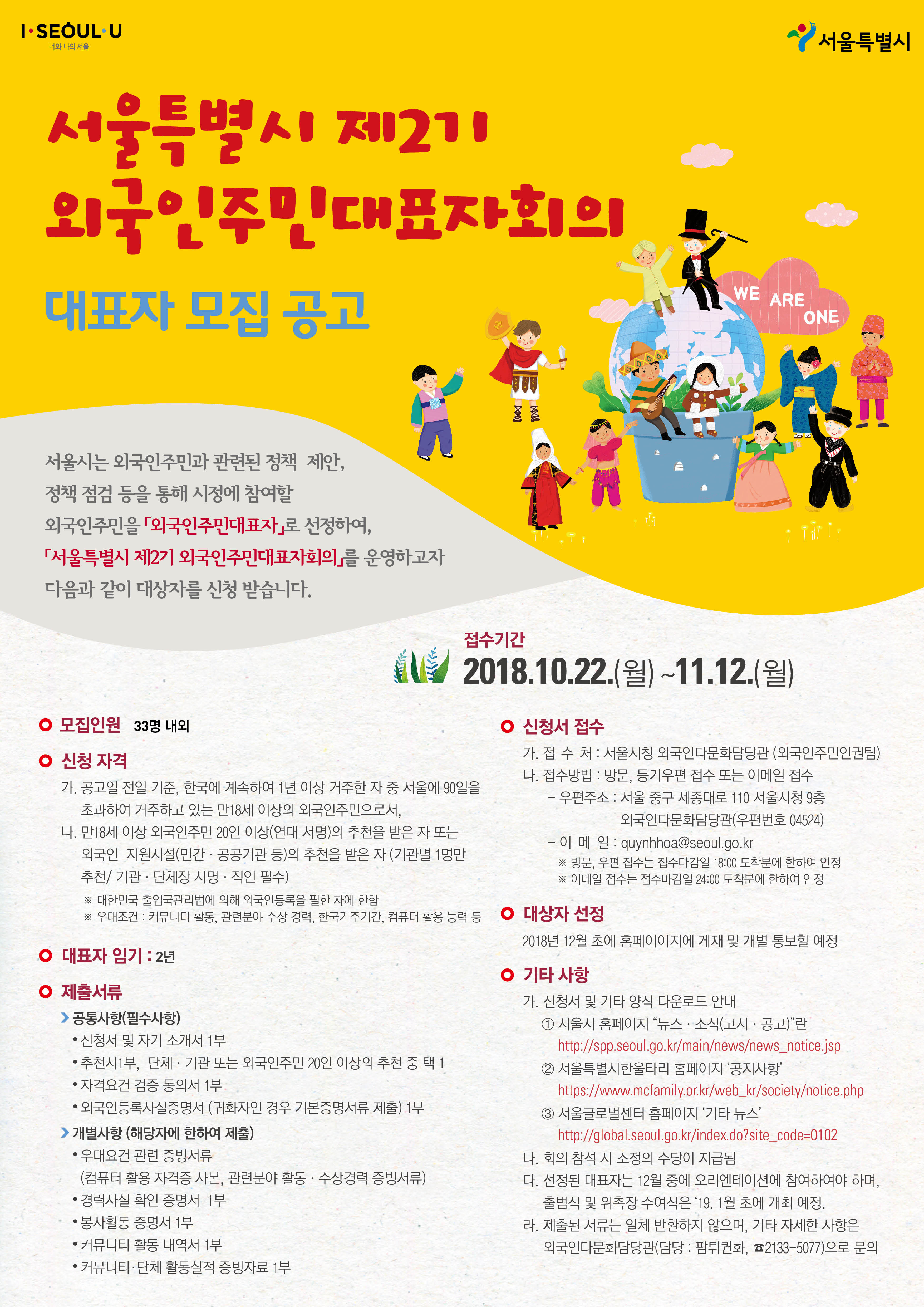 - [기타] 서울시 제2기 외국인주민대표자회의 대표자 모집